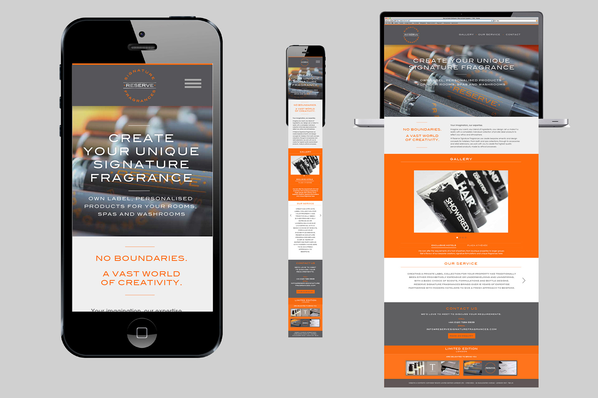 Reserve Signature Fragrances create bespoke bath and body amenities for luxury hotels around the world. We created the brand identity and collateral for the exclusive service, which ranged from fragrance sampler promotional boxes through to a responsive website - www.reservesignaturefragrances.com
