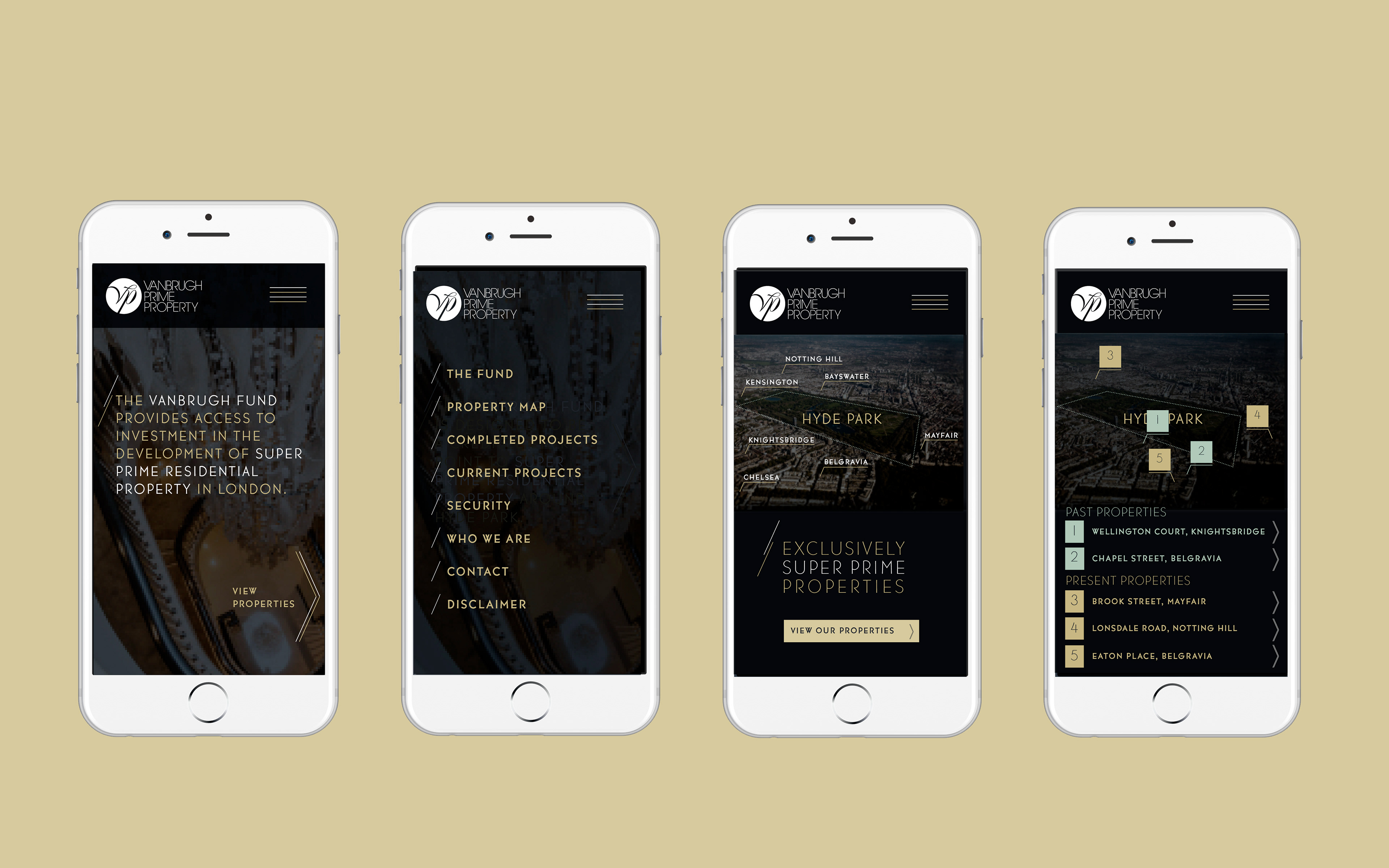 Vanbrugh Prime Property (VPP) is an investment fund focussed on prime property development in Central London. We were asked to design and develop a new website as a tool to attract potential high-net-worth investors. As part of the project, we evolved the brand identity, retaining the existing brand mark but introduced a new colour palette, typography and design aesthetic that reflected the premium developments the fund invests in. The site is fully responsive CMS, simple to navigate, and enhances VPP position as a credible investment opportunity in premium 'turn'key' property development. Presentation brochures and other collateral have been produced in line with the new brand identity.